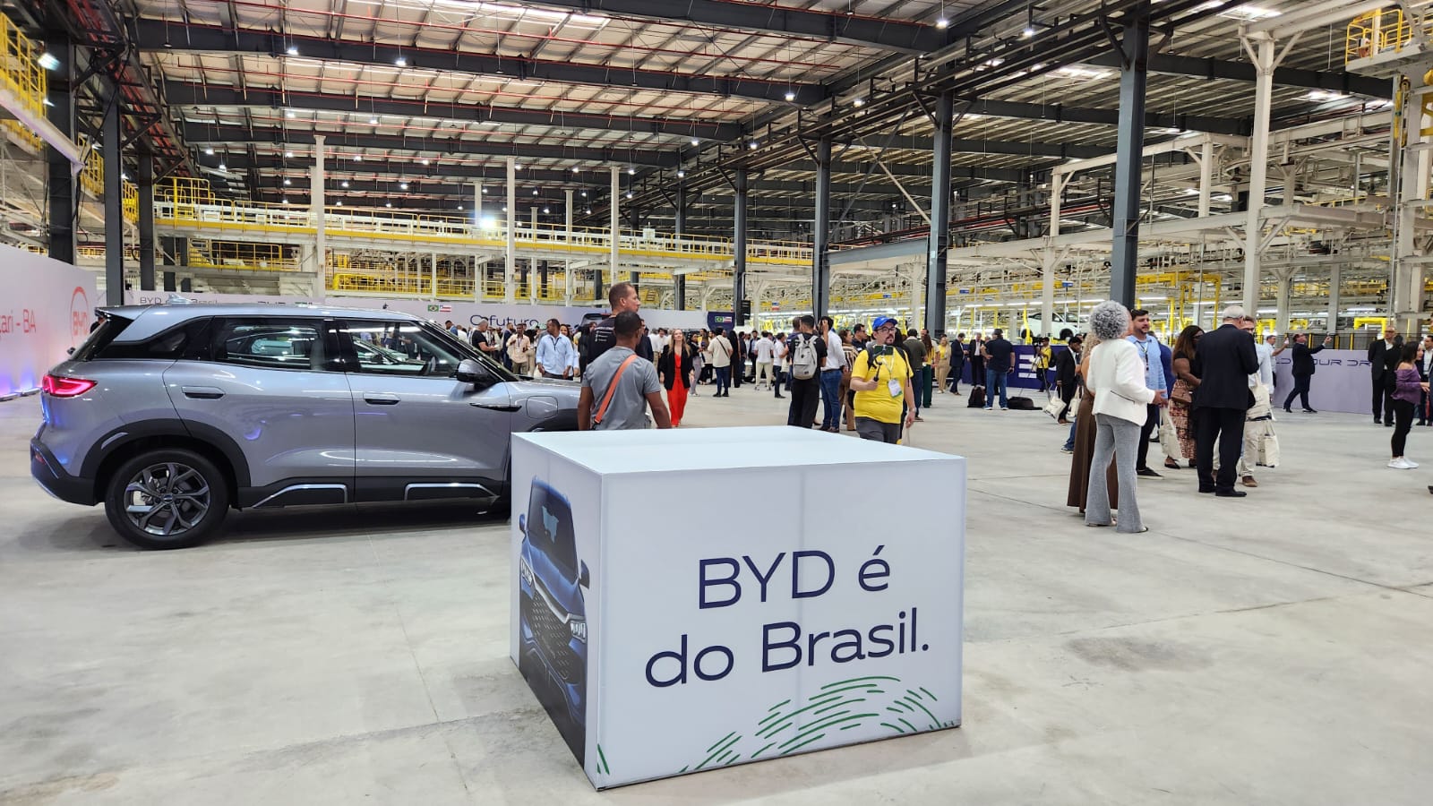 Com um investimento de R$ 5,5 bilhões e uma megaestrutura que ocupa o equivalente a 645 campos de futebol, a BYD deu início a uma nova fase da sua atuação no Brasil ao apresentar o primeiro veículo produzido em caráter experimental na planta de Camaçari, na Bahia. O modelo é o Dolphin Mini, que será um dos três automóveis da montadora inicialmente fabricados em território nacional, juntamente com o Song Pro e o King, todos em sistema SKD (Semi Knocked-Down), ou seja, com montagem local a partir de kits importados.