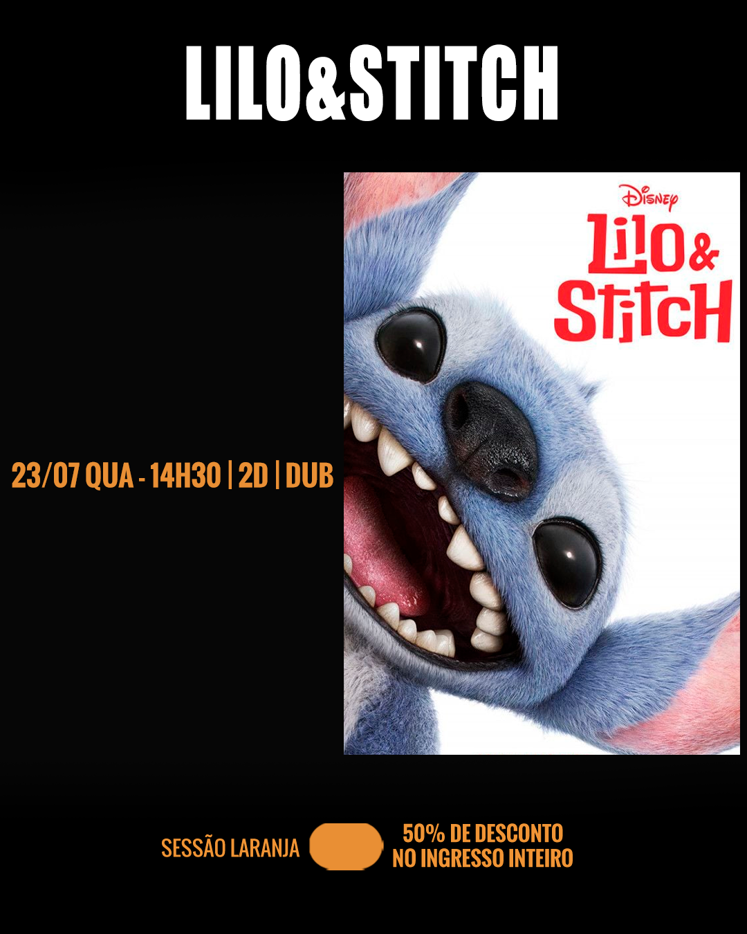 FILMES LILO&STITCH E COMO TREINAR O SEU DRAGÃO - 50% DE DESCONTO NO INGRESSO INTEIRO