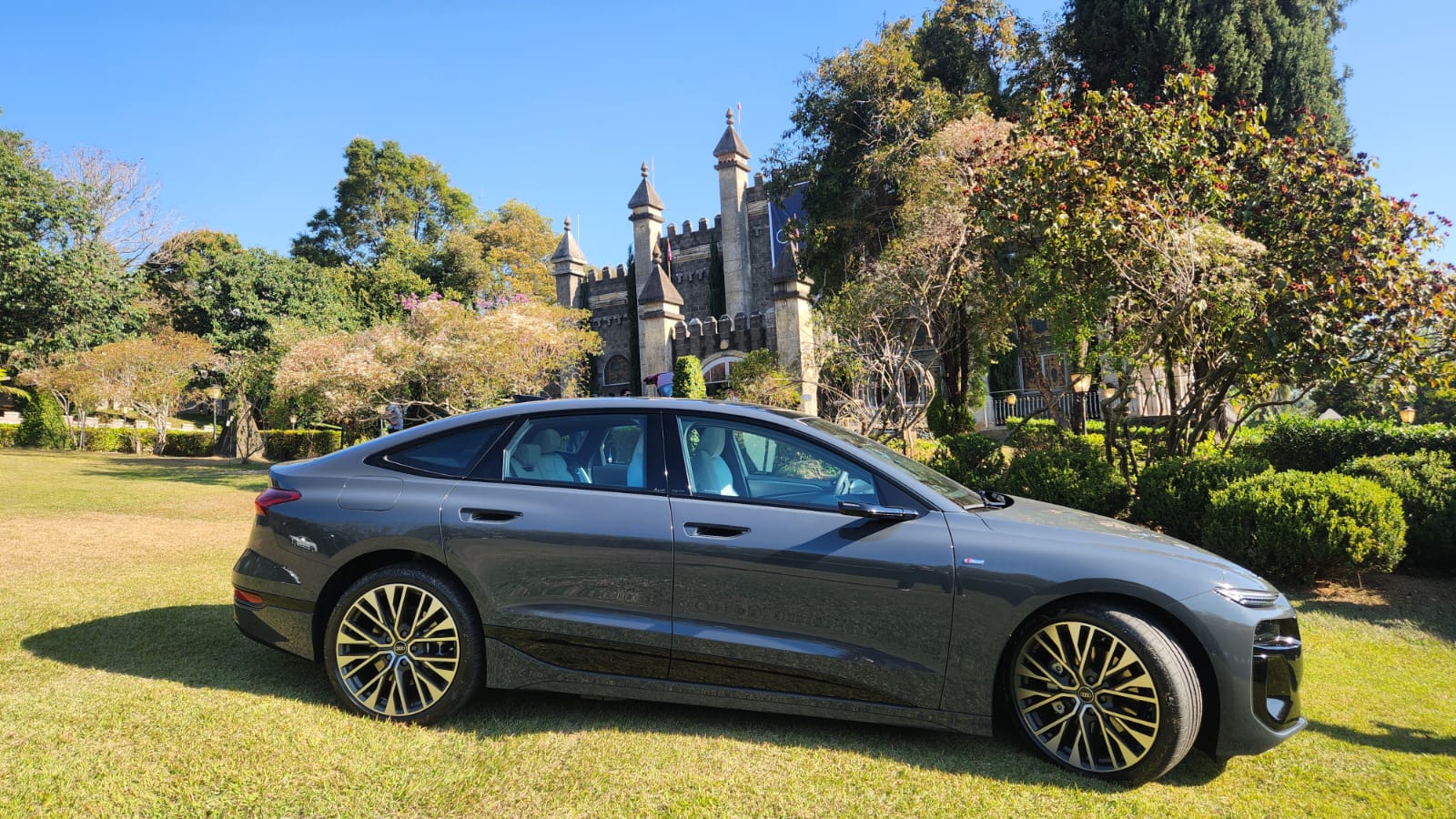 O design do modelo é outro aspecto que se destacou. A carroceria Sportback adota linhas fluídas que contribuem para o coeficiente aerodinâmico de 0,21, o mais baixo já registrado em um veículo da marca e do Grupo Volkswagen. Elementos como rodas Audi Sport de 21 polegadas, lanternas Full-LED interligadas e os inéditos Audi Rings traseiros iluminados marcaram a identidade visual.