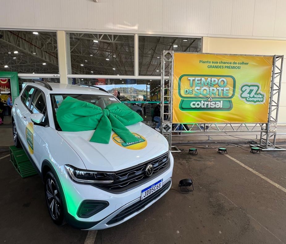 A campanha Tempo de Sorte Cotrisal 2025 sorteará, ao todo, três T-Cross e 27 vales-compras de R$ 2.500,00 cada, divididos em três etapas. Podem participar associados e clientes que entregam produção de soja, milho, trigo e leite, ou realizam compras nas lojas da rede Cotrisal, trocando suas notas fiscais por cupons.