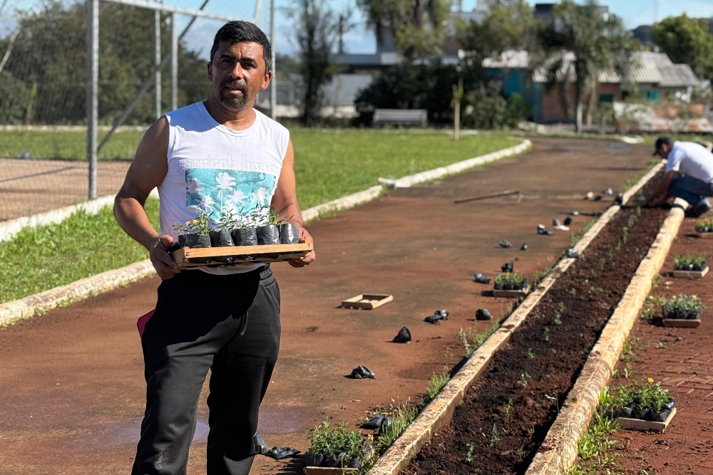 Equipe de Jardinagem revitaliza praças de Sarandi com plantio de árvores e flores