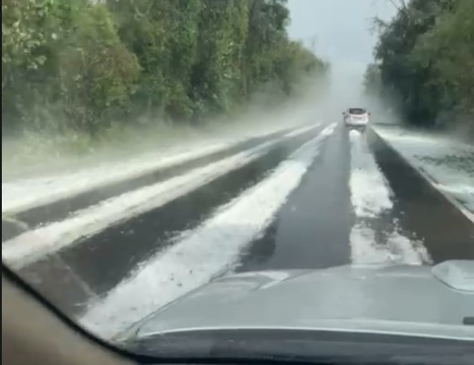 A queda intensa de pedras de gelo surpreendeu moradores e provocou danos em residências, lavouras e trechos de rodovias.