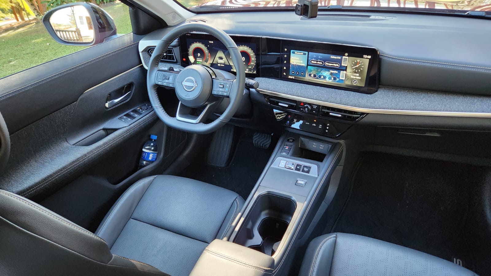 No painel, a combinação da tela digital de 7 polegadas com a central multimídia de 12,3 polegadas proporcionou fácil leitura das informações e conexão imediata via Apple CarPlay e Android Auto sem fio. A partida remota do motor e o carregador de celular por indução reforçam a conveniência do modelo no uso cotidiano. O volante com regulagem de altura e profundidade e as entradas USB-C para os passageiros traseiros completam o pacote funcional.