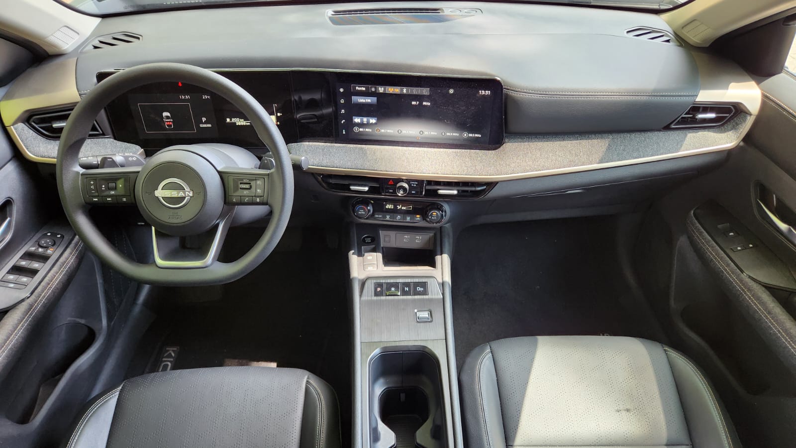 O Kicks 2026 também foi redesenhado internamente. A nova central multimídia de 12,3 polegadas integrada ao painel digital forma um conjunto único e moderno. O seletor de marchas eletrônico e-Shifter substitui a alavanca tradicional e libera espaço no console central. O pacote de segurança foi ampliado para 23 recursos eletrônicos, incluindo alerta de colisão, frenagem automática de emergência, sistema de visão 360° e alerta de objetos esquecidos no banco traseiro.