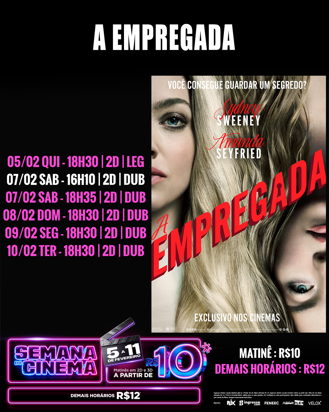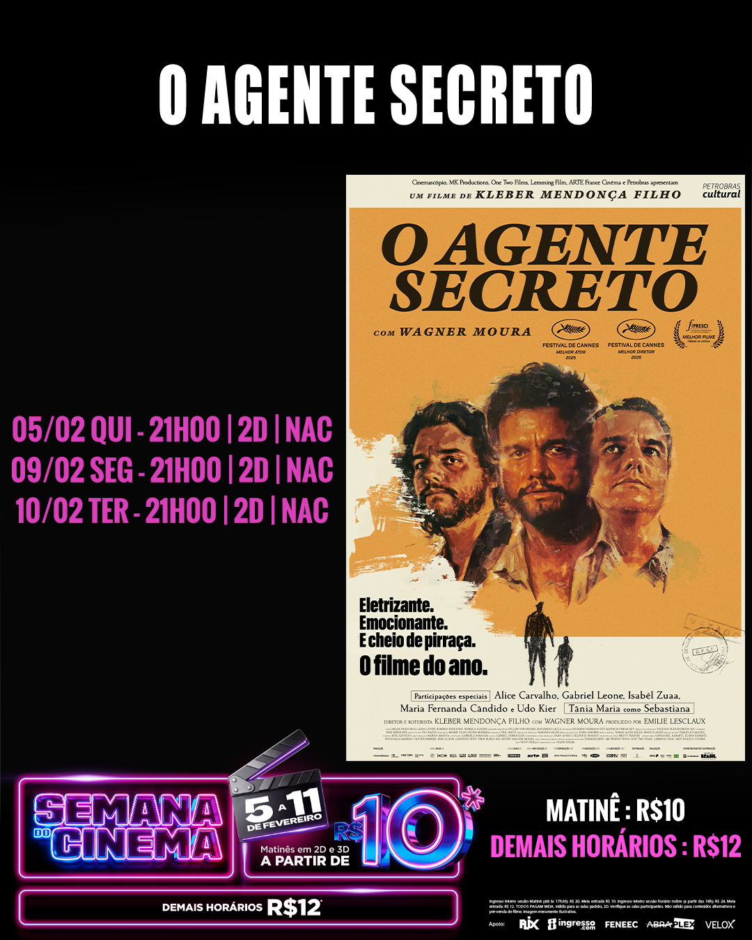 SEMANA DO CINEMA - DE 05 A 11/02 = INGRESSOS A PARTIR DE R$10 NAS MATINÊS E R$12 NOS DEMAIS HORÁRIOS (APÓS AS 18H)
