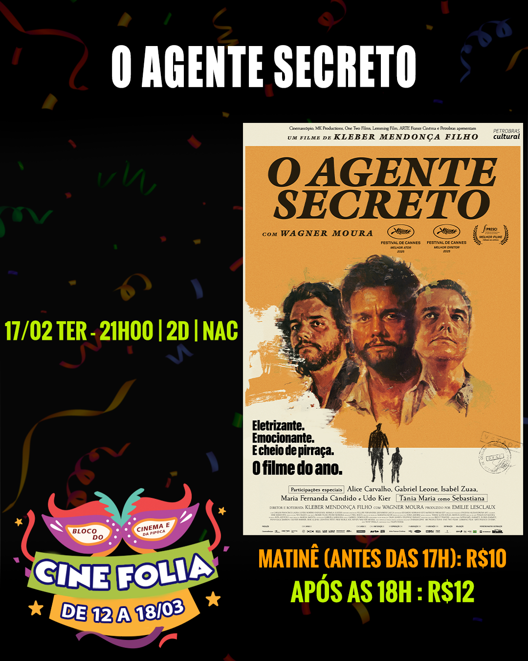 CINE FOLIA - DE 12 A 18/02 = INGRESSOS A PARTIR DE R$10 NAS MATINÊS (ATÉ AS 17H) E R$12 APÓS AS 18H.