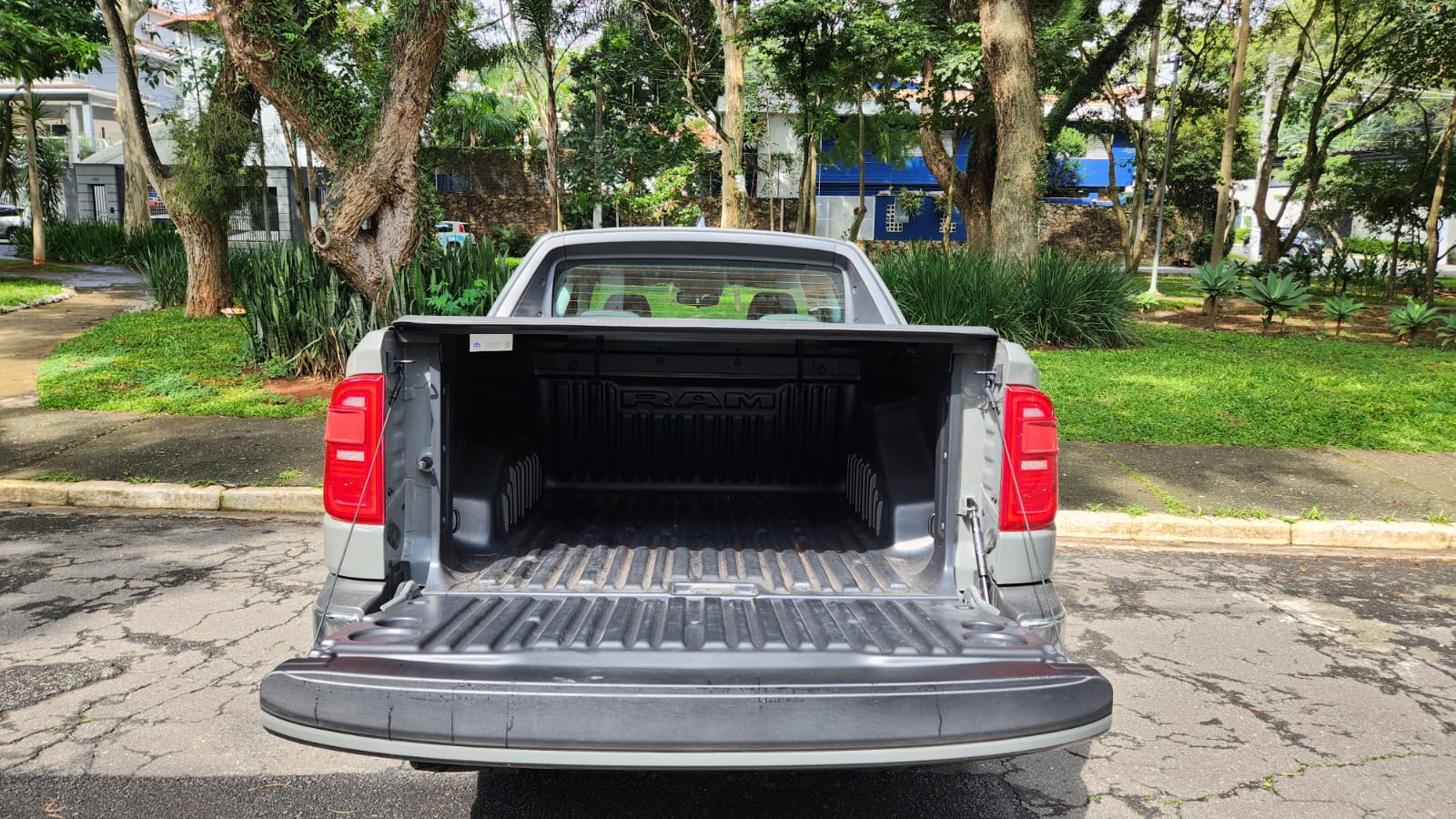 A caçamba possui revestimento interno, iluminação em LED e pontos de fixação de carga, além de tampa traseira com abertura amortecida. Esses elementos contribuem para o transporte de diferentes tipos de carga, mantendo a proposta de versatilidade da picape.