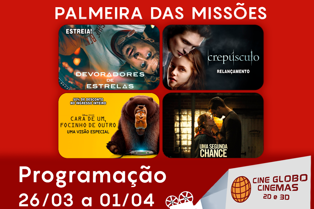 Programação de 26/03 a 01/04 do Cine Globo Cinemas de Palmeira das Missões