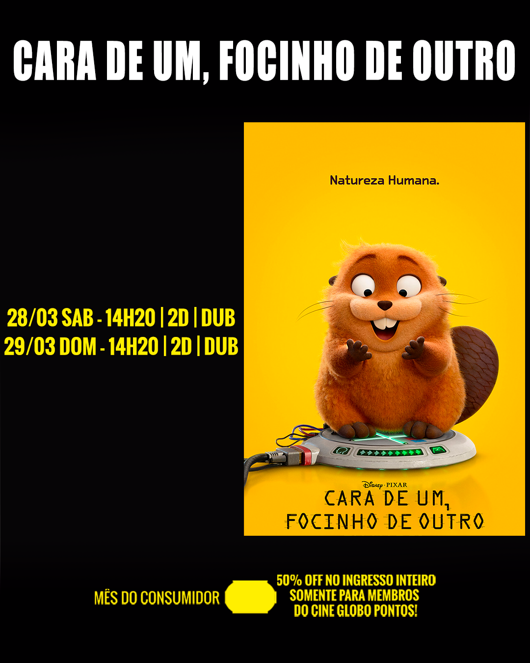 ATÉ DIA 31/03 - MÊS DO CONSUMIDOR NO CLUBE CINE GLOBO PONTOS = 50% DE DESCONTO NO INGRESSO INTEIRO PARA CLIENTES REGISTRADOS NO APP CINE GLOBO CINEMAS.