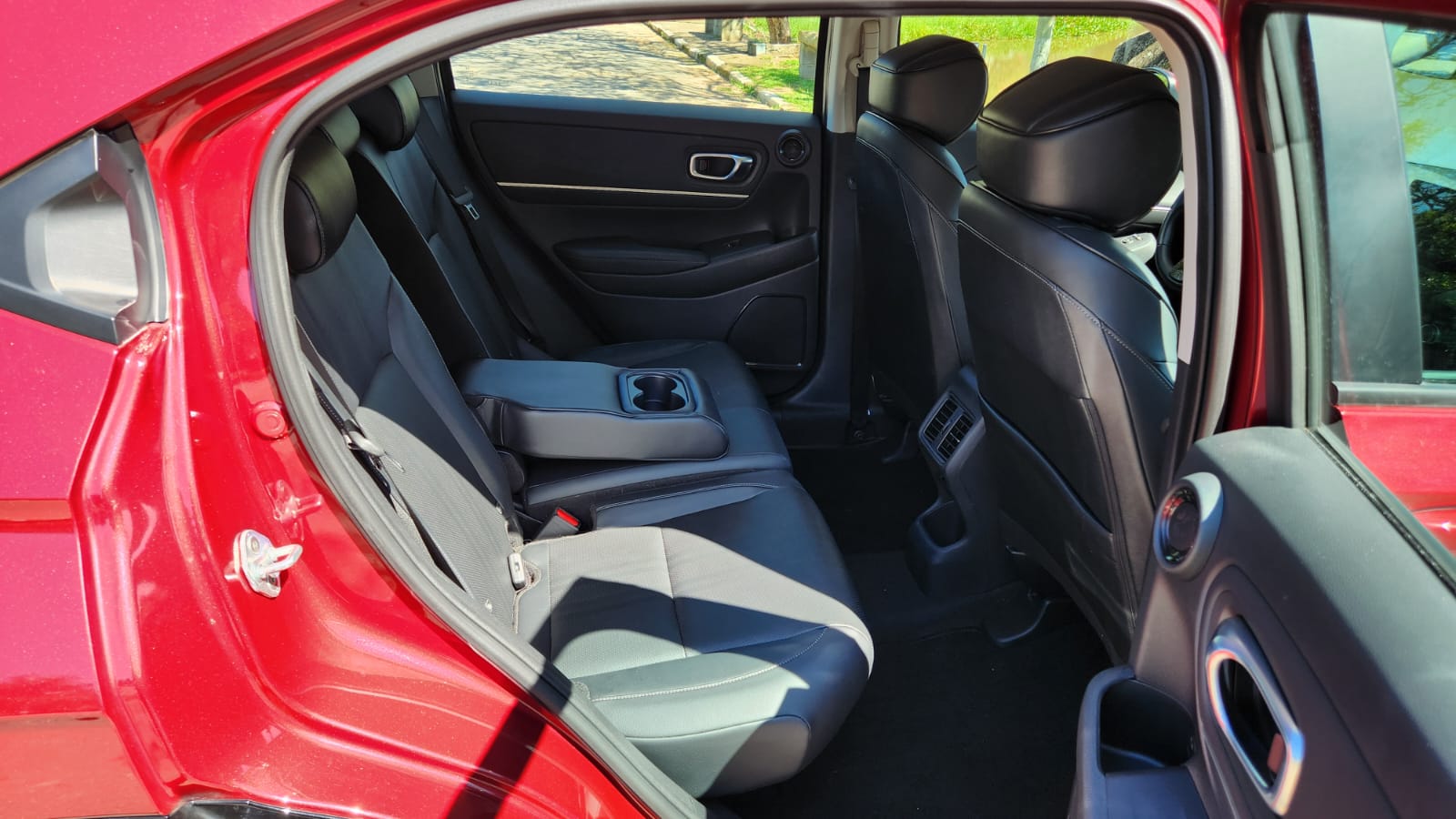 O porta-malas com abertura e fechamento automático por sensor de presença foi utilizado em situações de carga durante a viagem, facilitando o acesso sem necessidade de uso das mãos. O espaço interno também permitiu acomodação adequada para passageiros no banco traseiro ao longo dos deslocamentos.