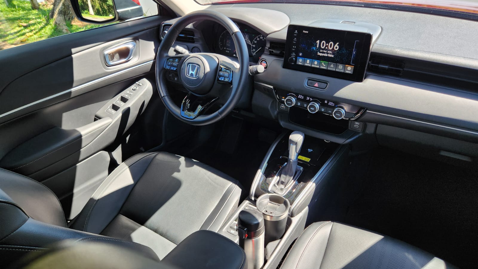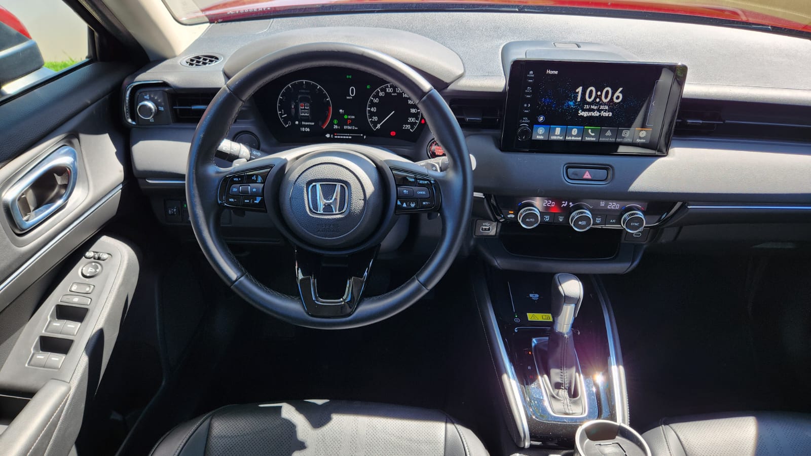 O pacote de assistência Honda Sensing atua com recursos como controle de cruzeiro adaptativo, frenagem automática de emergência e assistente de permanência em faixa. Durante a condução urbana, esses sistemas operaram com intervenções pontuais, especialmente em situações de redução de velocidade e aproximação de outros veículos.