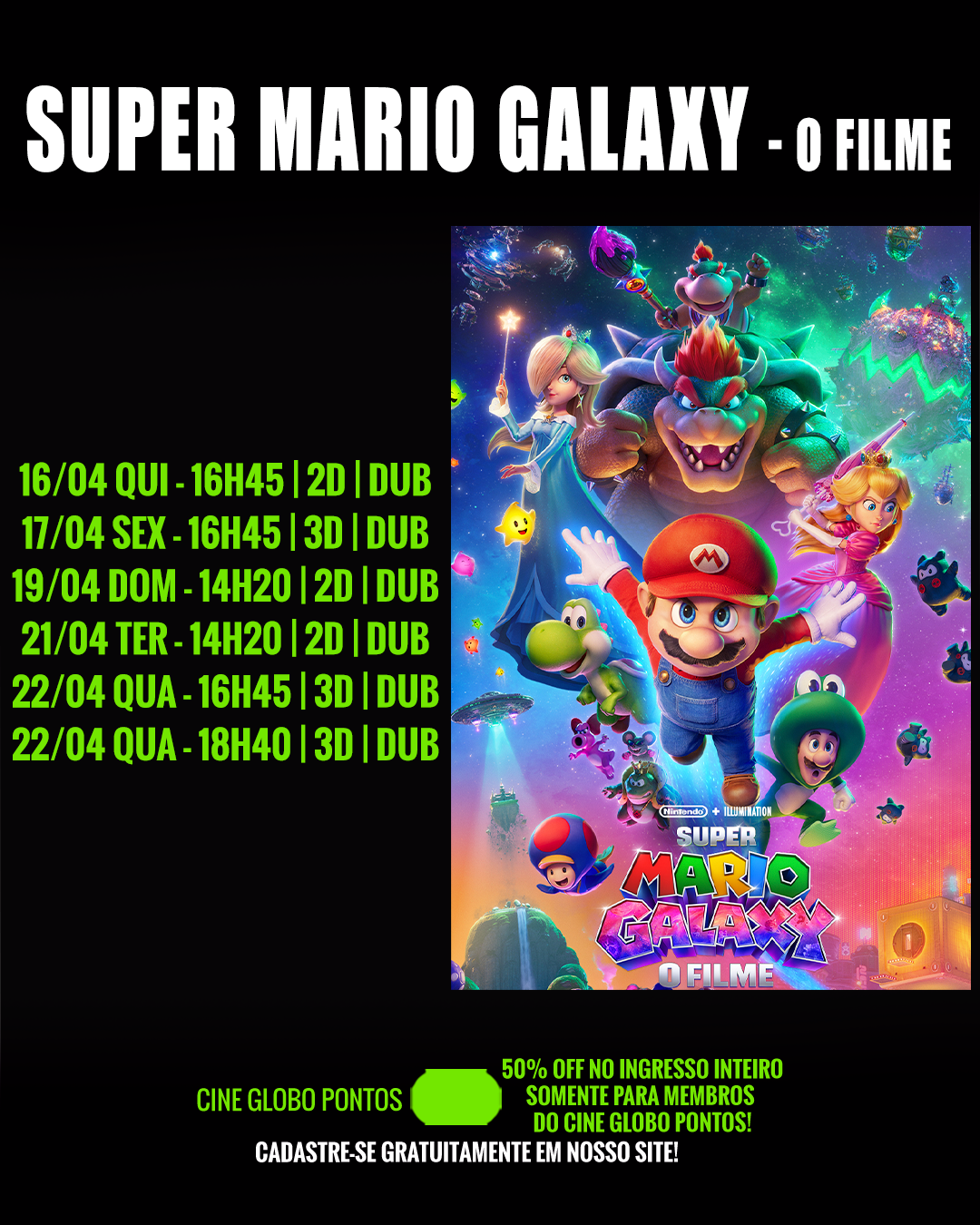 SUPER MARIO GALAXY = 50% DE DESCONTO NO INGRESSO INTEIRO PARA MEMBROS DO CINE GLOBO PONTOS!!