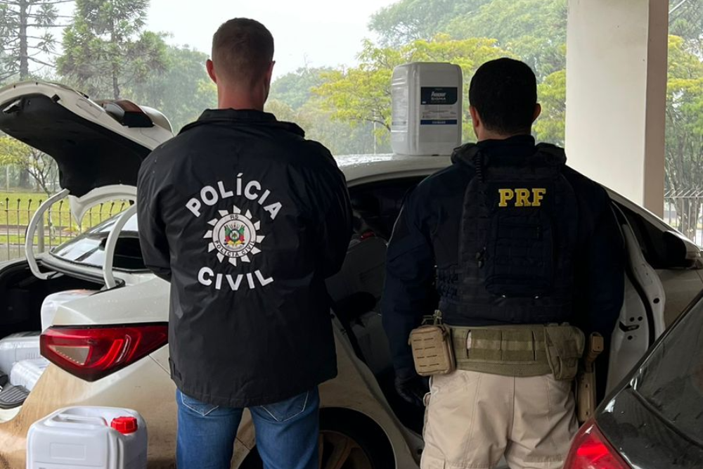 Durante uma operação conjunta de combate ao crime, Policiais Rodoviários Federais e Policiais Civis abordaram um Cronos em Planalto. Dentro do carro foram encontrados 40 galões carregados com agrotóxico contrabandeado, além de 65 quilos de agrotóxico granulado. O produto é proibido no Brasil e causa riscos à saúde humana e ao meio ambiente.
