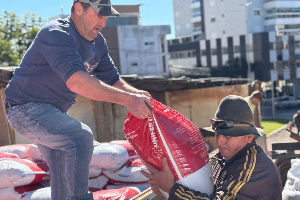 Produtores de leite de Sarandi estão recebendo fertilizantes para uso nas pastagens que servem como alimento para as vacas. A entrega está sendo realizada pela Secretaria Municipal de Agricultura, e a entrega dos fertilizantes foi iniciada no dia 26/06.