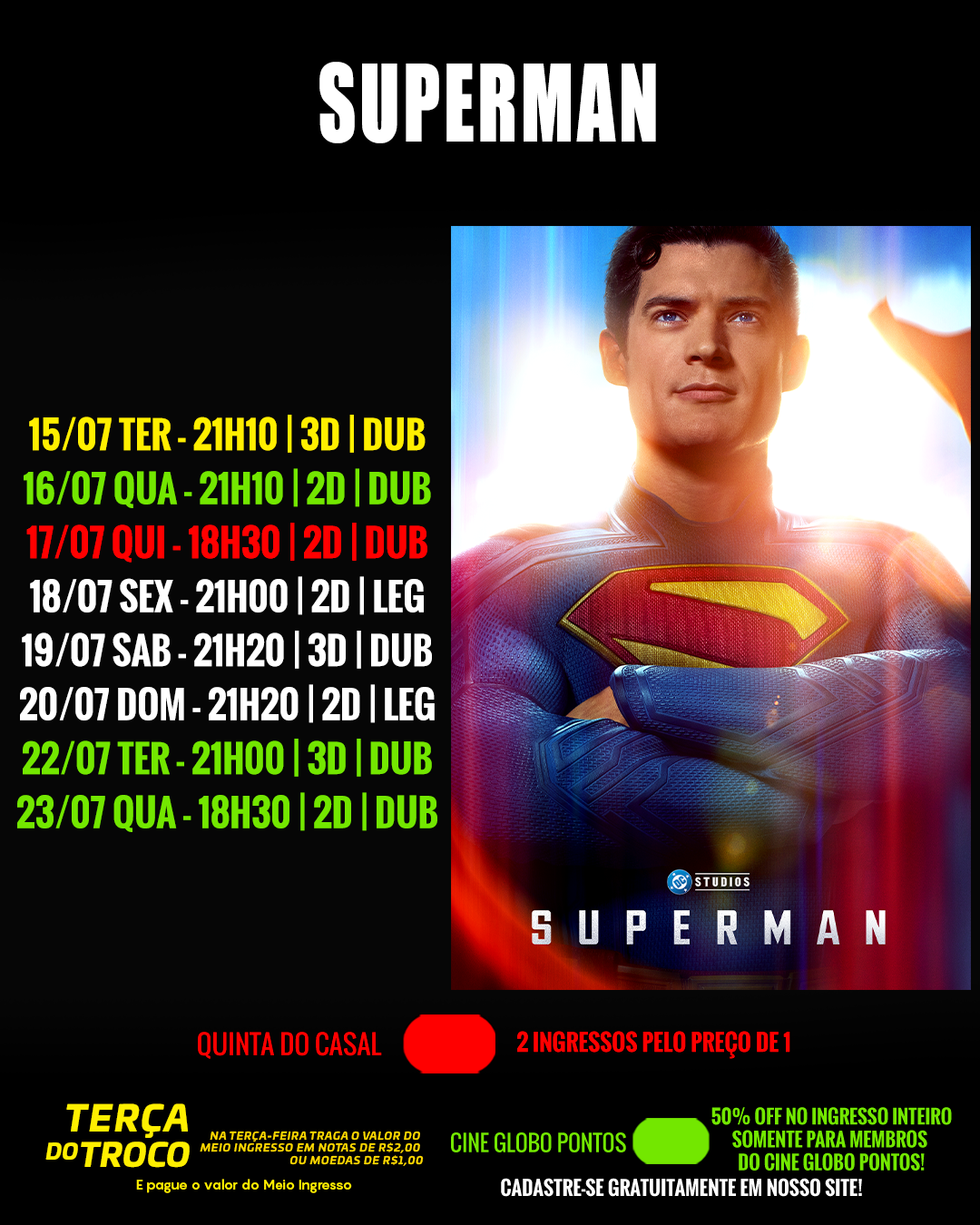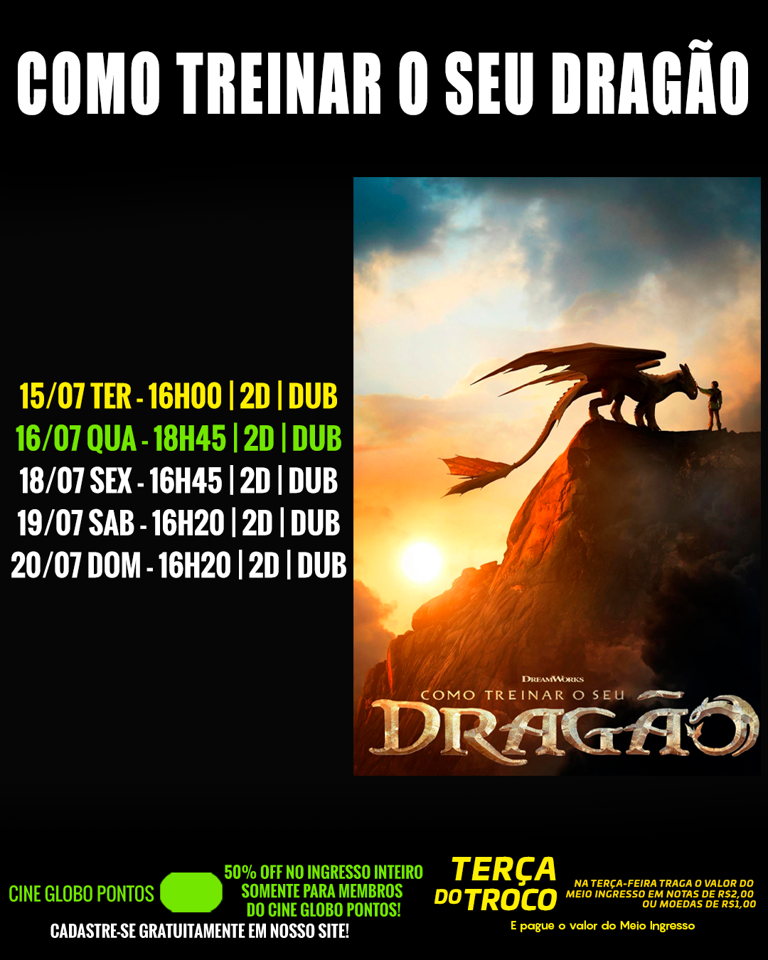 DIA 15/07 - TERÇA DO TROCO! TRAGA O VALOR DO MEIO INGRESSO EM NOTAS DE R$2,00 OU MOEDAS DE R$1,00 E R$0,50 E PAGUE APENAS MEIO INGRESSO!