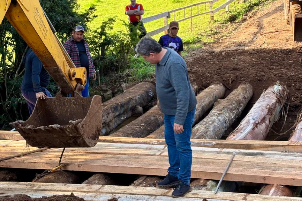 A Secretaria de Obras realiza um trabalho intenso no interior do município para melhorar a infraestrutura, garantindo a manutenção e recuperação de pontes, estradas e outros pontos estratégicos que são essenciais para o bem-estar e segurança da população. O prefeito Pablo Mari esteve no local acompanhando o trabalho, junto ao secretário de Obras, Jurandir Zini, que supervisionava a equipe responsável pela execução do serviço.
