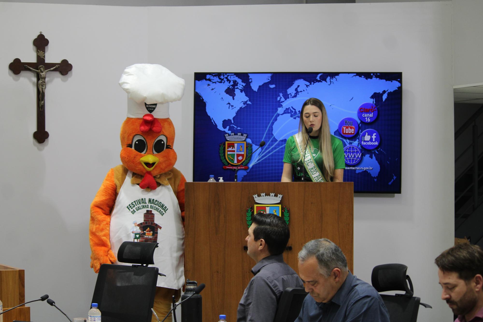 Ainda falando em Festival, Yasmim agradeceu o apoio de todos os vereadores na aprovação da lei que considera a galinha recheada um patrimônio histórico, cultural e gastronômico do município. “É algo importante, pois graças a isso foi possível aprovar projeto a nível federal para captar recursos Lei de Incentivo à Cultura, Lei Rouanet, com coordenação do projeto feita pela Lisboa & Rocha Consultoria e realização do Ministério da Cultura, Governo Federal. Importante agradecer a todos os demais parceiros que nos ajudam a manter a grandeza do evento, em especial à Prefeitura, uma apoiadora incansável através de suas administrações”, garantiu.