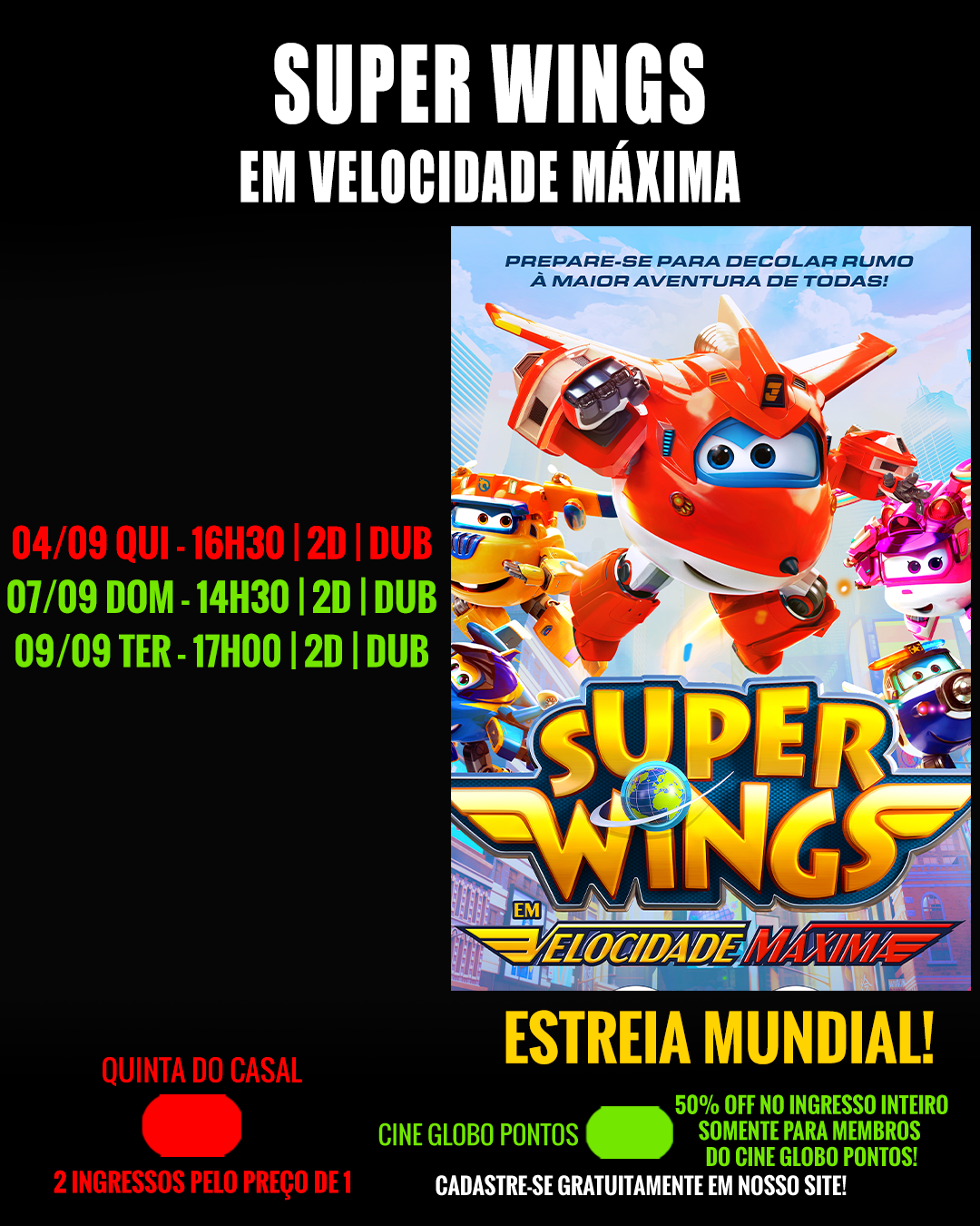 FILME SUPER WINGS - 50% DE DESCONTO NO INGRESSO INTEIRO PARA MEMBROS DO CINE GLOBO PONTOS! SE INSCREVA GRATUITAMENTE EM NOSSO APP