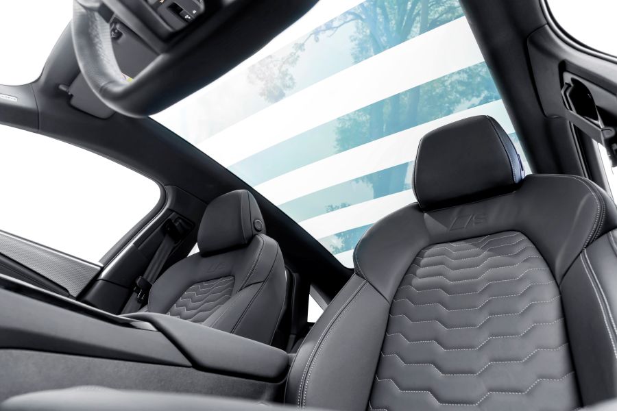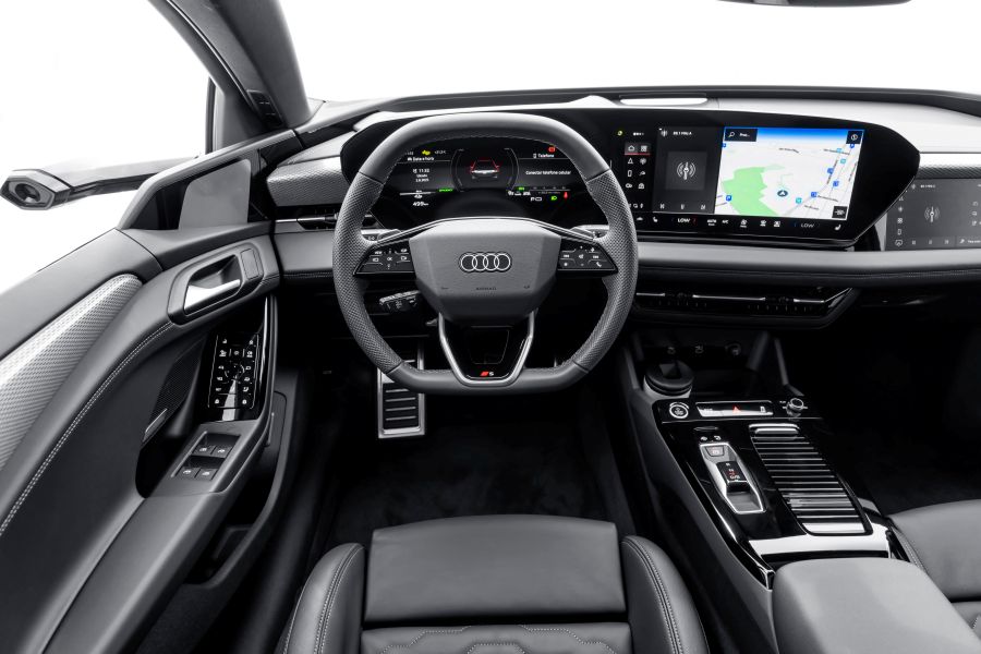 No interior, a cabine integra três telas digitais: Audi virtual cockpit de 11,9 polegadas, MMI panoramic display de 14,5 polegadas e MMI passenger display de 10,9 polegadas. O sistema de som Bang & Olufsen 3D, com 16 alto-falantes e 705W de potência, completou o ambiente. O teto panorâmico de vidro com transparência ajustável e os retrovisores virtuais de segunda geração, oferecidos como opcionais, chamaram a atenção pela inovação.
