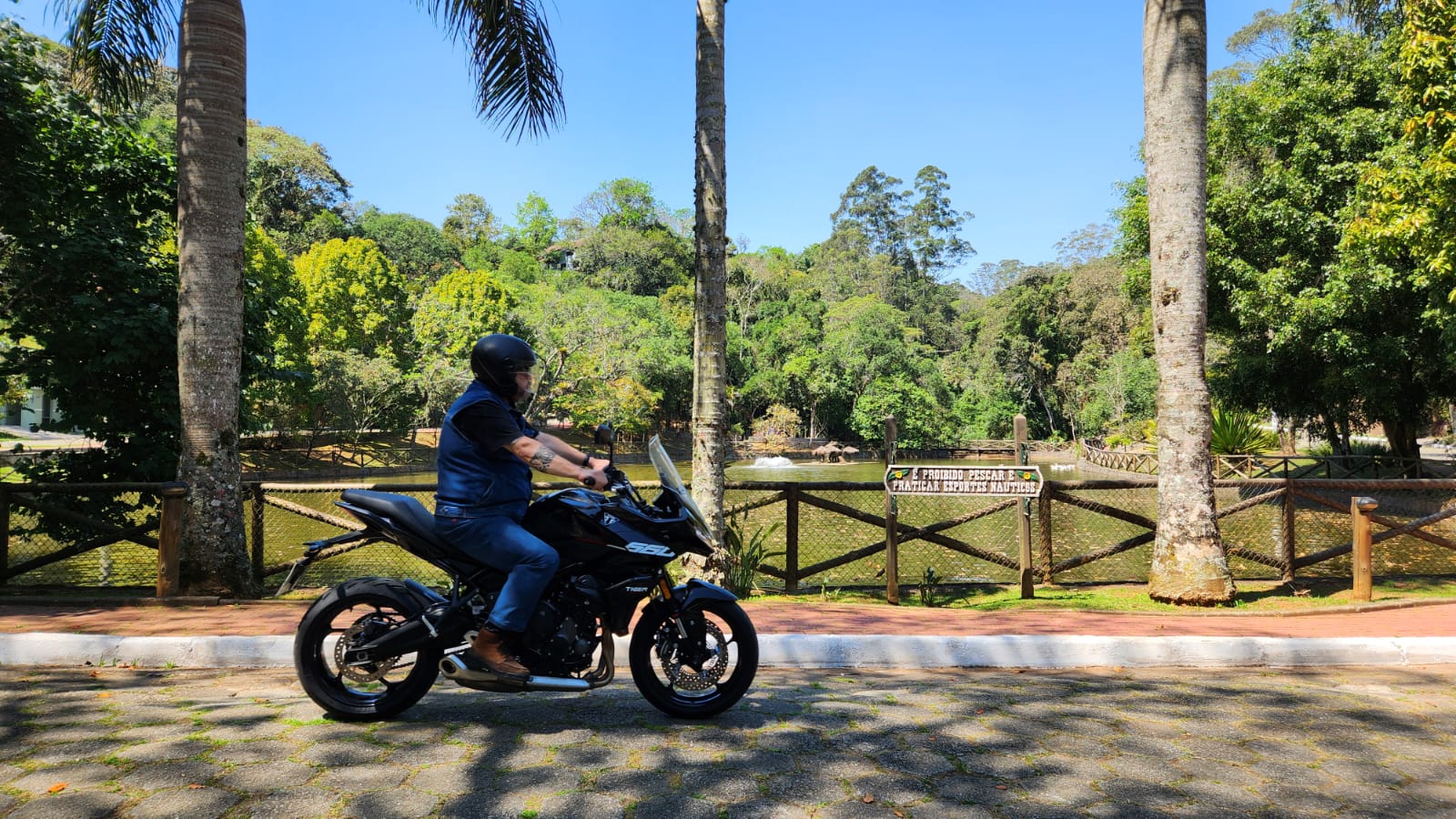A passagem pela Serra da Cantareira foi o momento em que a Tiger Sport 660 revelou sua vocação de sport touring. As curvas fechadas exigiram respostas rápidas, e o motor tricilíndrico mostrou elasticidade suficiente para manter o ritmo, mesmo quando exigido em retomadas mais intensas. A manobrabilidade se destacou, favorecida pelo chassi equilibrado e pela posição de pilotagem que transmite confiança.