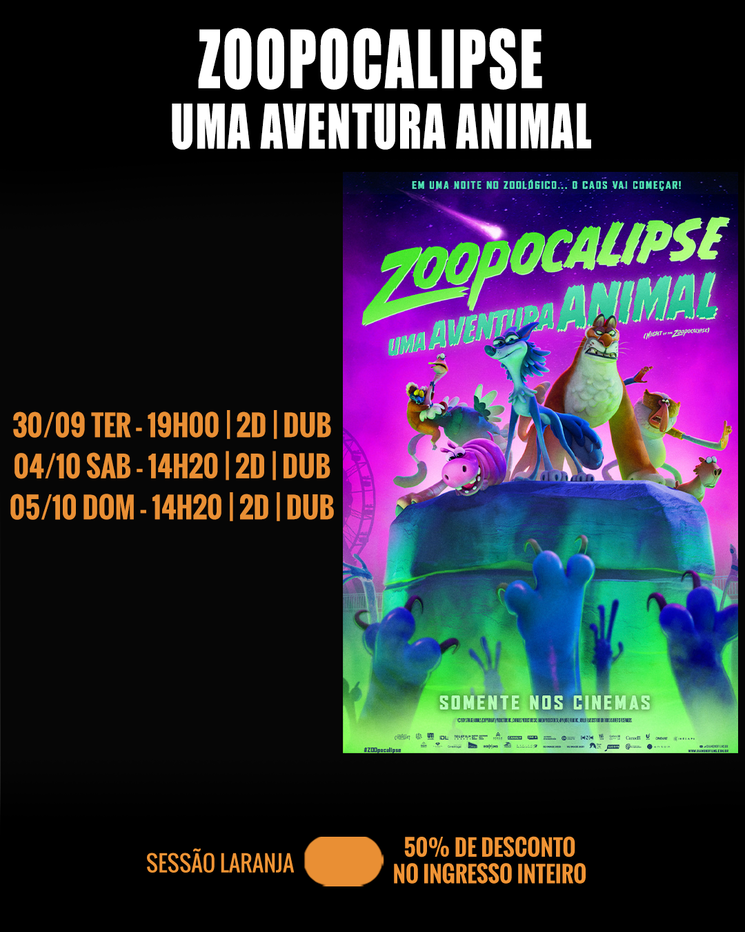 FILMES ZOOPOCALIPSE E O QUATRILHO - 50% DE DESCONTO NO INGRESSO INTEIRO!!