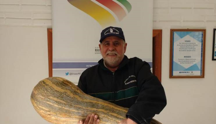 A EMATER do município de Sarandi informou nesta quarta-feira (30) que o Agricultor Cláudio Ribeiro colhei uma abóbora de 27,10 kg.