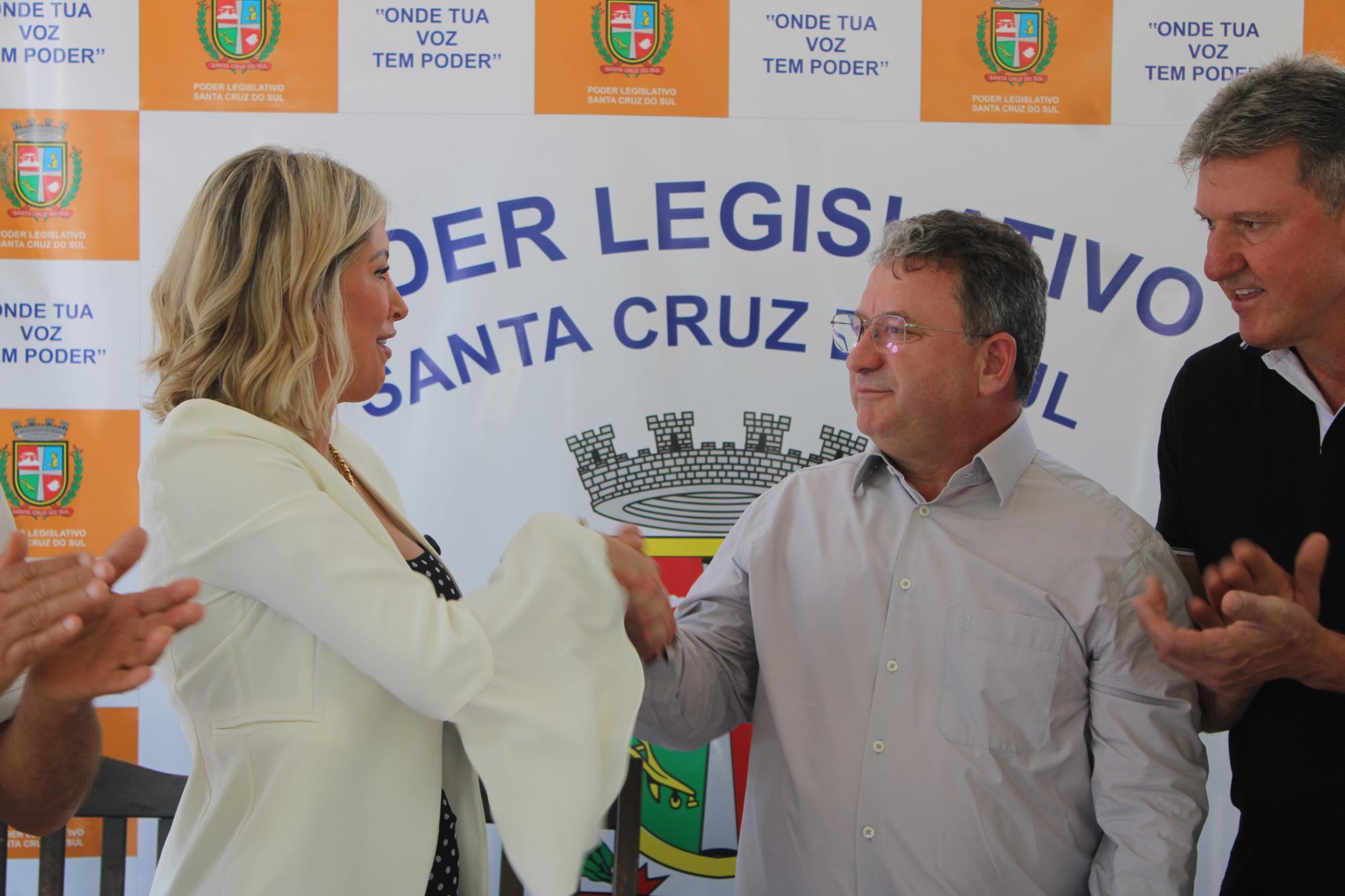 Estiveram presentes ainda os vereadores Licerio Agnes (PSDB), Abel Trindade (PL) e Gerson Vargas (PP). O termo de início deverá ser assinado ainda em janeiro. Enquanto isso, a construtora já mobiliza as equipes que atuarão na construção da nova sede. A edificação, de 4.605,99 metros quadrados, terá estilo contemporâneo e atenderá aos padrões de eficiência, acessibilidade, acolhimento e transparência.