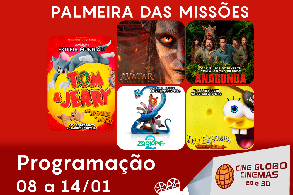 Programação de 08 a 14/01/26 do Cine Globo Cinemas de Palmeira das Missões