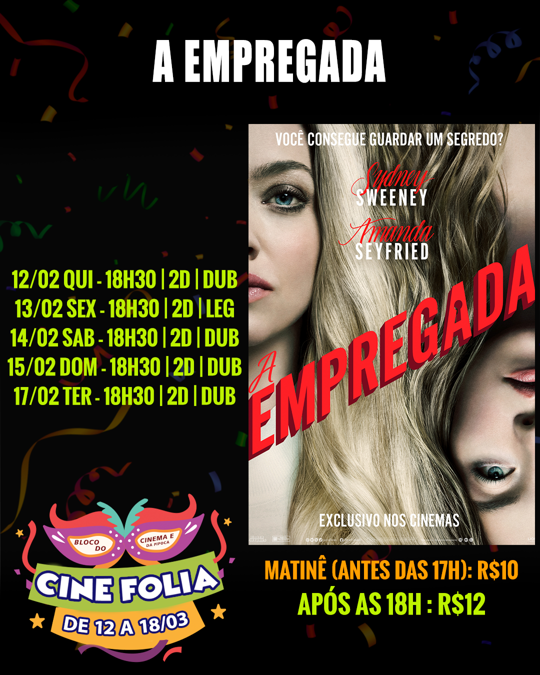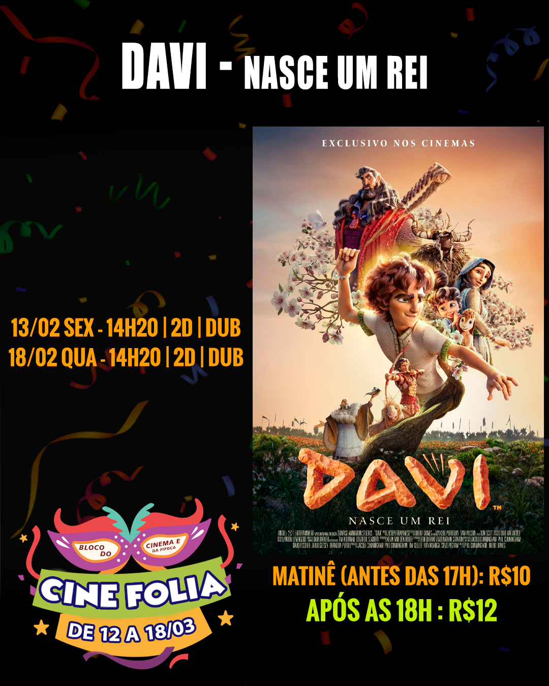 CINE FOLIA - DE 12 A 18/02 = Dando continuidade a Semana do Cinema, chegou o CINE FOLIA, a festa ficou maior e os valores promocionais ficaram os mesmos! INGRESSOS A PARTIR DE R$10,00 nas sessões até às 17h, e R$12,00 após às 18h00.