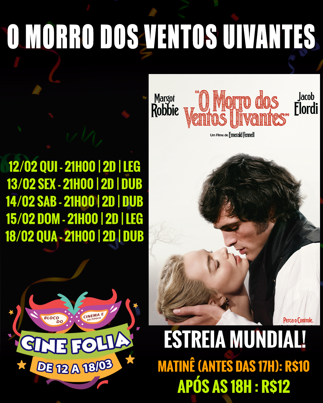 CINE FOLIA - DE 12 A 18/02 = INGRESSOS A PARTIR DE R$10 NAS MATINÊS (ATÉ AS 17H) E R$12 APÓS AS 18H.