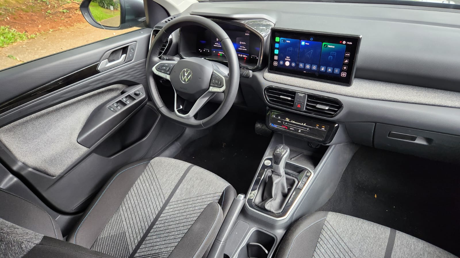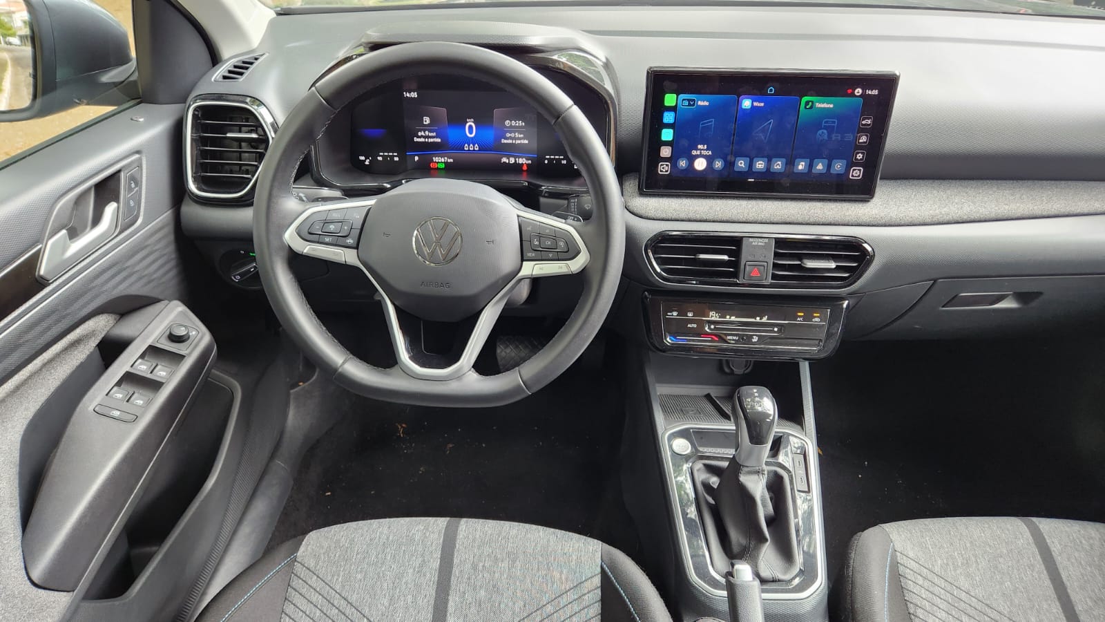 A versão Comfort reúne uma lista de equipamentos que inclui painel de instrumentos digital de oito polegadas e central multimídia VW Play Connect com tela de 10,1 polegadas. O sistema oferece conectividade com espelhamento de smartphones e serviços remotos. O modelo também dispõe de carregamento de celular por indução, portas USB tipo C e integração com aplicativos de navegação e entretenimento.