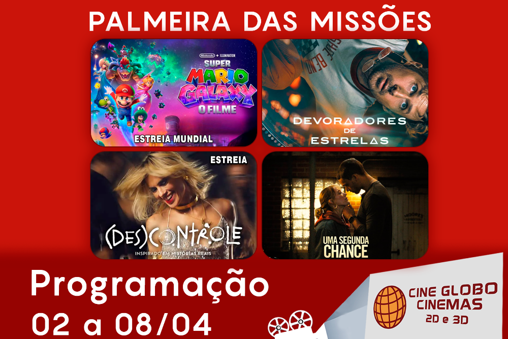 Programação de 02 a 08/04 do Cine Globo Cinemas de Palmeira das Missões