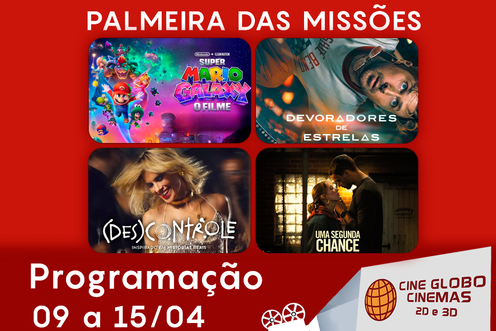 Programação de 09 a 15/04 do Cine Globo Cinemas de Palmeira das Missões