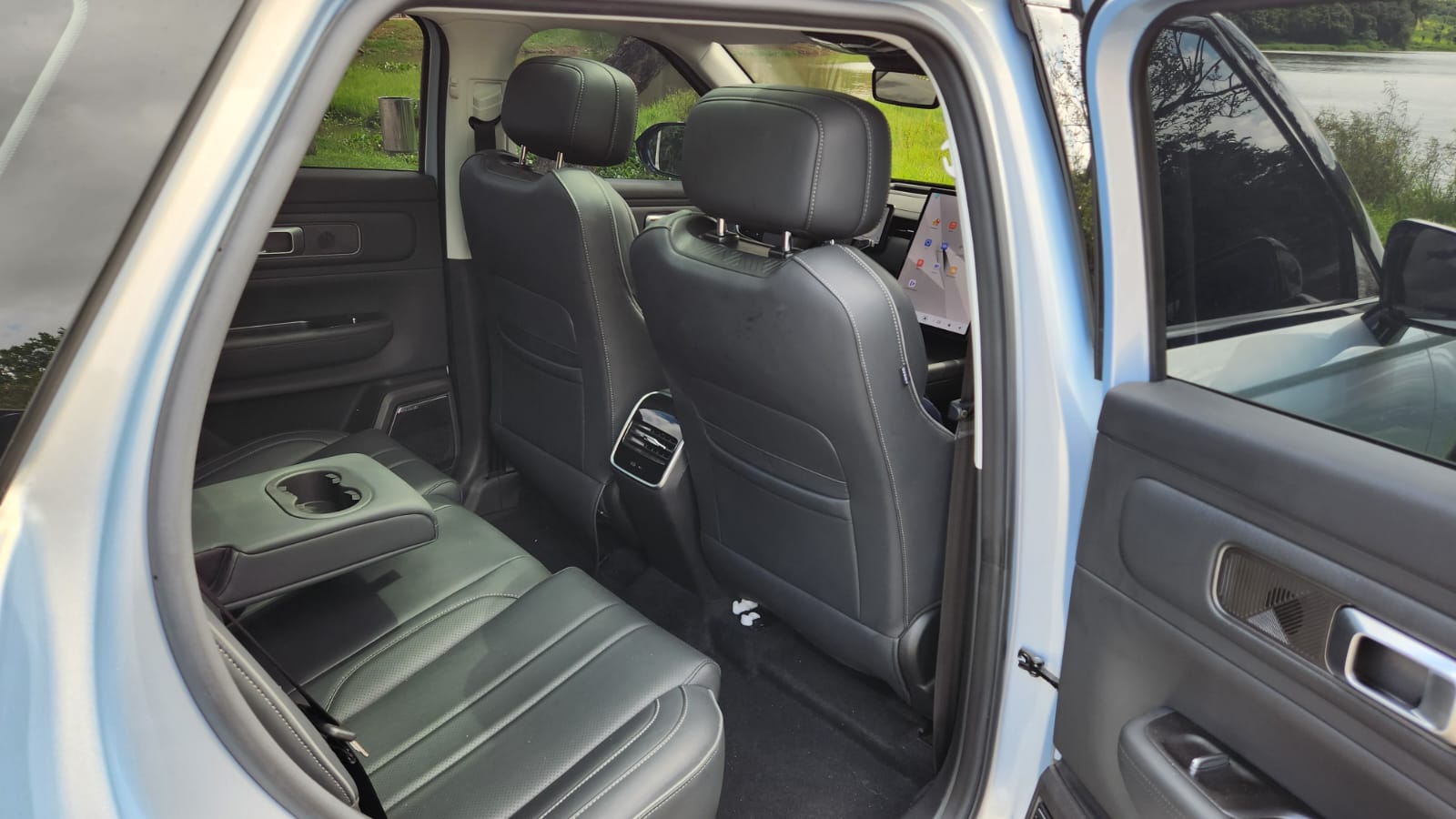 Os recursos de conforto incluem bancos dianteiros com ajustes elétricos, aquecimento e ventilação, além de ar-condicionado dual zone e iluminação ambiente configurável. O modelo também conta com teto solar panorâmico, retrovisores com memória e rebatimento elétrico, além de porta-malas com acionamento elétrico.