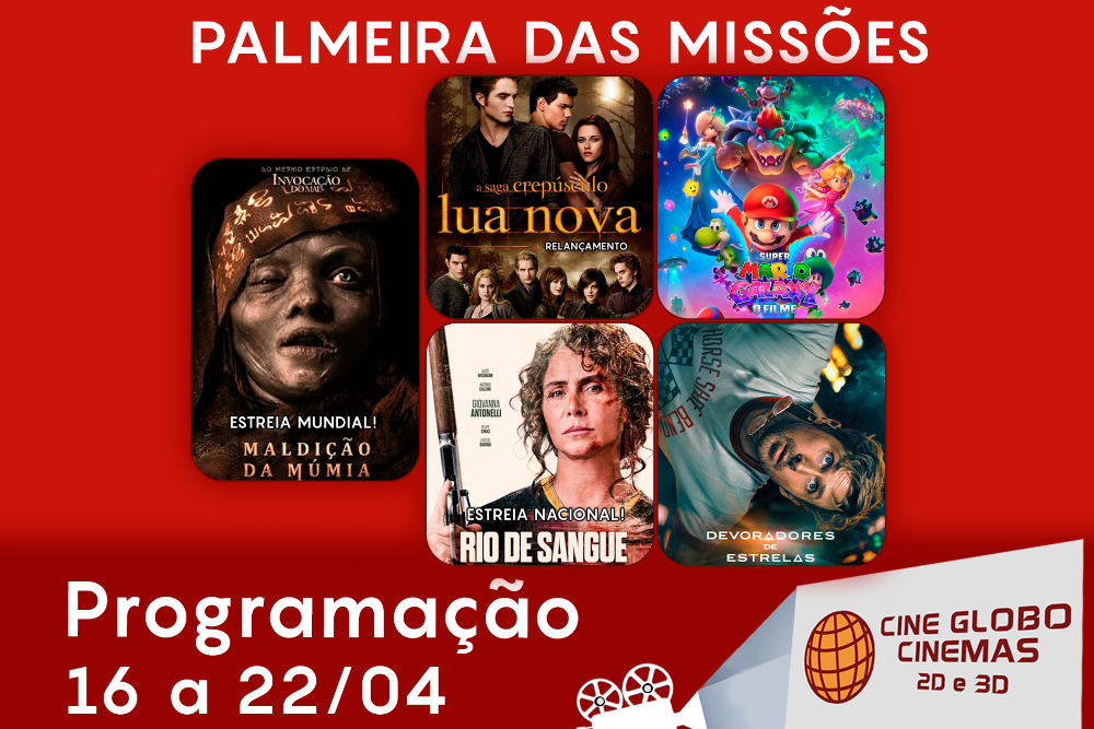 Programação de 16 a 22/04 do Cine Globo Cinemas de Palmeira das Missões