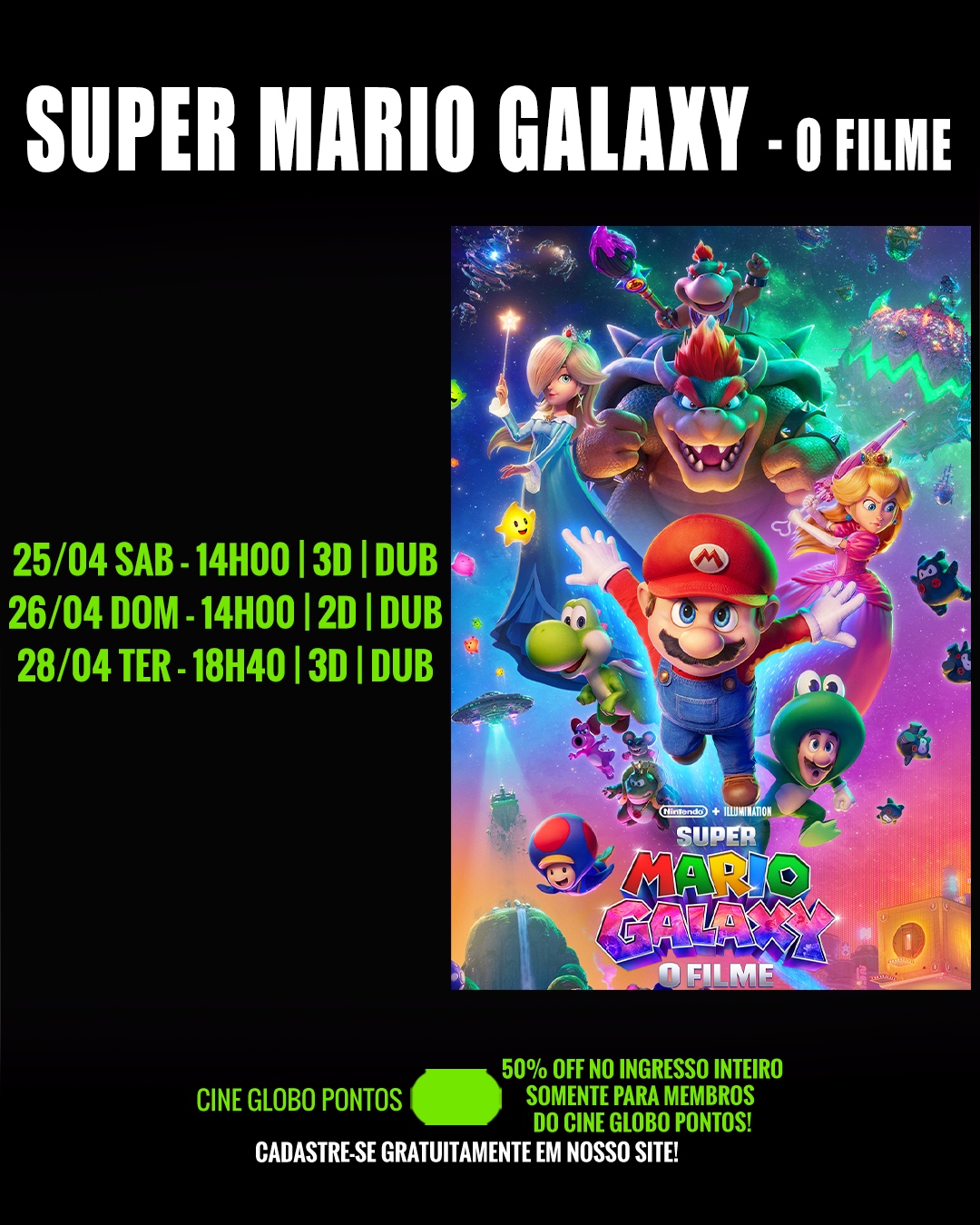 SUPER MARIO GALAXY = 50% DE DESCONTO NO INGRESSO INTEIRO PARA MEMBROS DO CINE GLOBO PONTOS!!