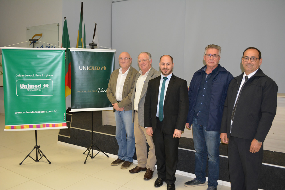 O evento foi mais um momento de aproximação entre as duas cooperativas e uma oportunidade de estreitar o relacionamento com seus públicos de interesse. “É uma parceria que sentimos no dia a dia em todas as atividades financeiras. A Unicred está sempre à disposição para nos atender enquanto cooperados e também a Unimed, como instituição cliente”, destacou o diretor-superintendente, médico Leandro Roberto Oss Zambon. Observação reforçada pelo presidente do Conselho de Administração, médico Reimar Bock, ao apontar a Unicred como parceira nos momentos em que se busca orientação financeira. Já o segundo vice-presidente da Unicred-Ijuí, médico Auro Heuser, descreveu a cooperativa como um “braço econômico da Unimed”, mencionando projetos de ampliação da instituição financeira.