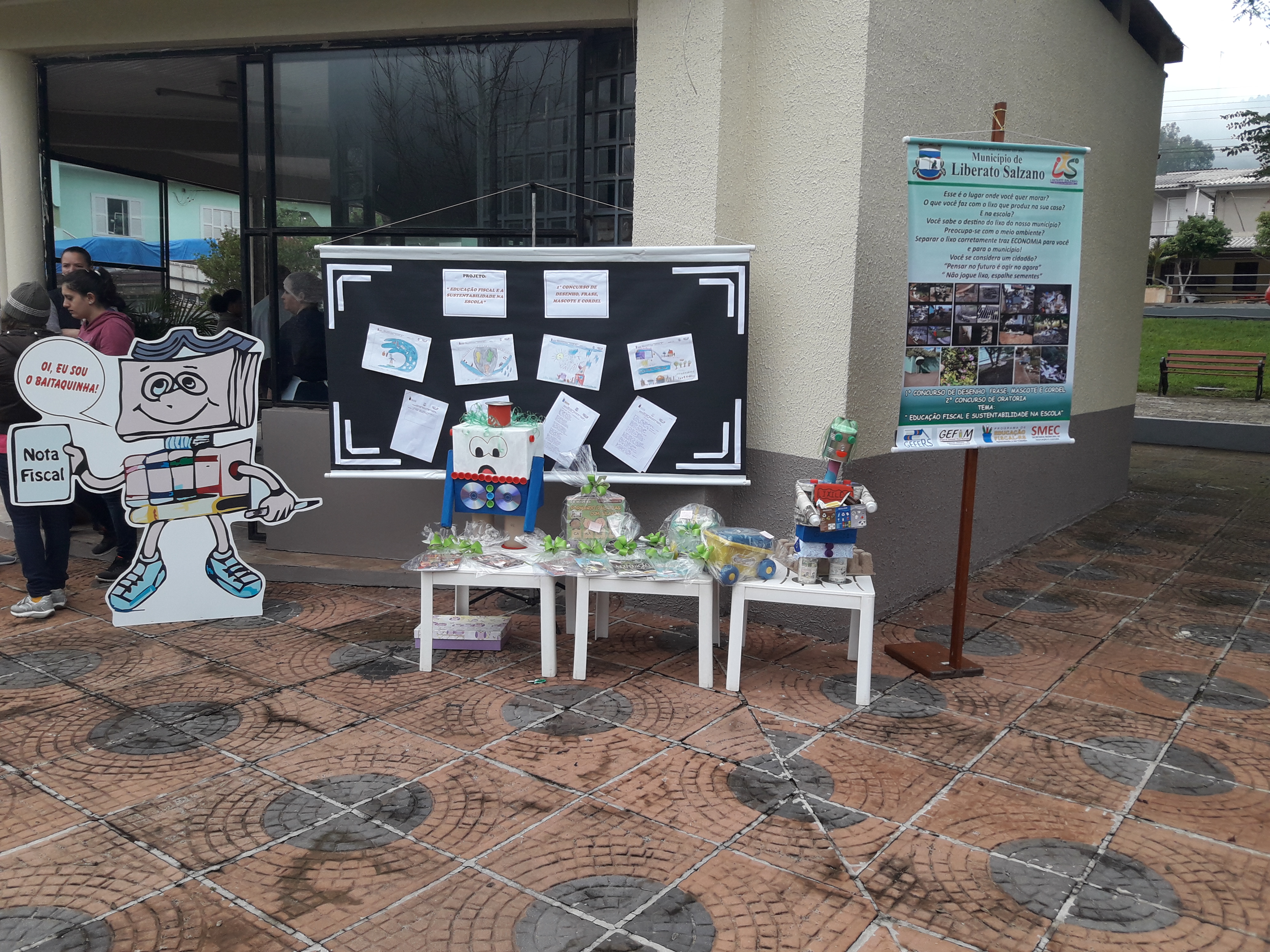 Na sexta-feira, dia 06, foram entregues as premiações para os vencedores da 1ª edição do Concurso de desenho, frase, mascote, cordel do Projeto “Educação Fiscal e a sustentabilidade na escola. Os prêmios foram entregues na praça municipal, onde também estava ocorrendo o dia do cooperativismo e diversas autoridades se fizeram presentes, incluindo o Prefeito Municipal Gilson de Carli, vice-prefeito Valdir Zottis, secretários e vereadores, além de diretores de escolas, professores e alunos da rede municipal e estadual de ensino. Na abertura do evento, alunos da turma do 9º ano B da EMEF Henrique Dias apresentaram o teatro “Os saltimbancos”. A eles e aos professores responsáveis, nossos agradecimentos.