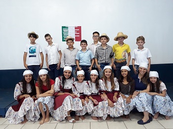 No entanto, para culminar e homenagear esta nação, nos dedicamos em ensaiar e aprender a cantar uma das músicas típicas Italianas “La Bella Polenta”. Nos caracterizamos, e socializamos com muito empenho e empolgação. Evidentemente foi uma atividade que proporcionou muito aprendizado e satisfação aos alunos.