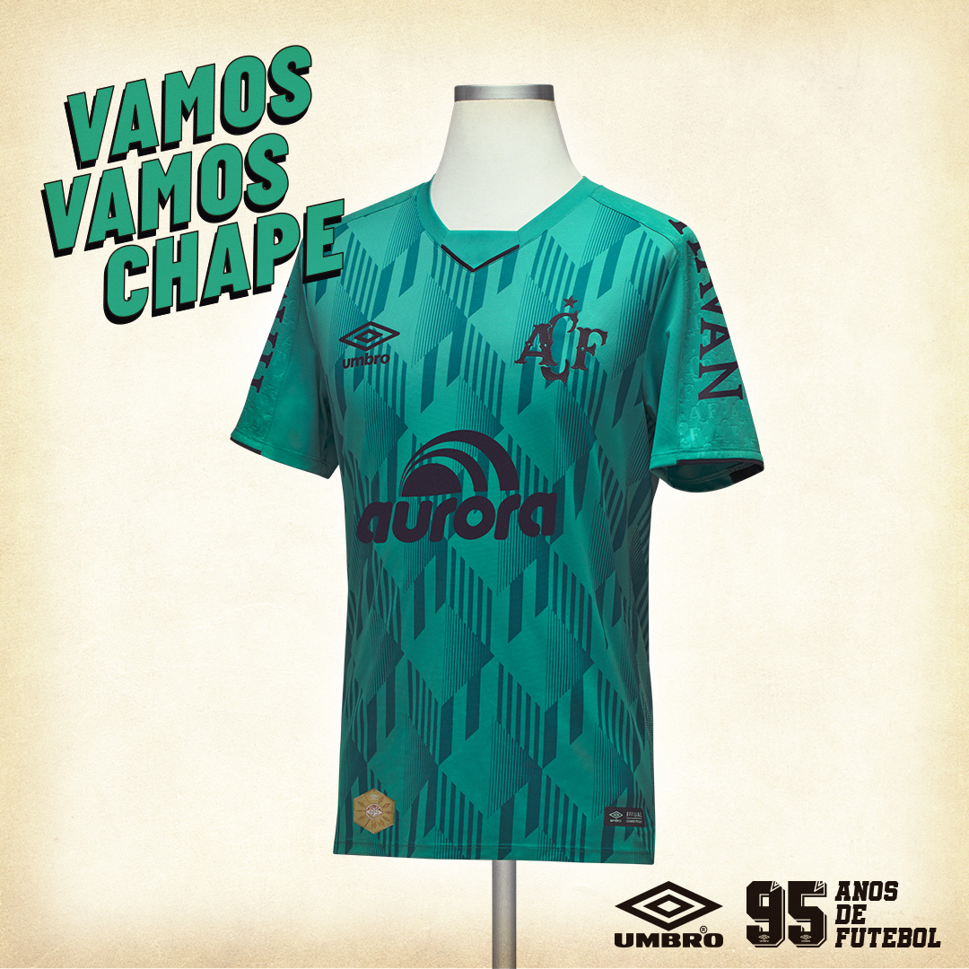 A Umbro Brasil e a Associação Chapecoense de Futebol apresentam a nova camisa 3 do clube catarinense, parte da campanha que comemora 95 anos da marca inglesa e relembra a ‘era de ouro’ da mesma, os anos 90. É inspirado nisso que novo manto da Chape chega para o torcedor alviverde, na cor verde-menta, com uma série de elementos que remontam a estética noventista.
