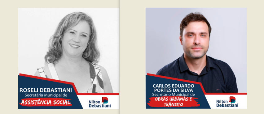 Carlos Eduardo Portes da Silva, o Carlão, será o Secretário de Obras Urbanas e Trânsito e Roseli Debastiani será a Secretaria Municipal de Assistência Social