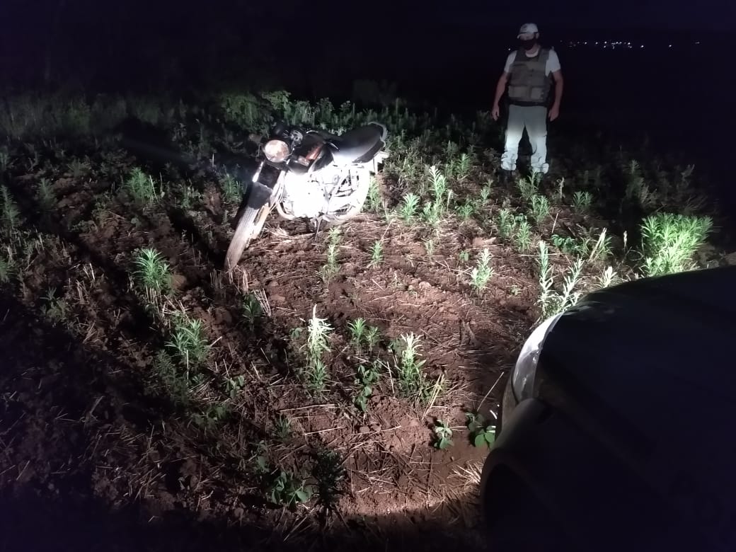 A motocicleta foi encontrada no meio de uma lavoura