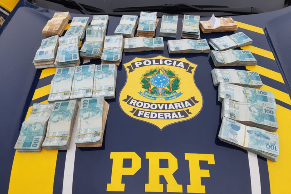 PRF apreende 263 mil reais sem procedência escondidos no capô de um carro