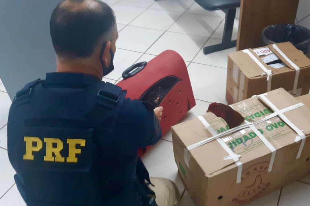 A Polícia Rodoviária Federal prendeu um homem transportava três galos de rinha num Omega. A ação ocorreu na BR 386, em Sarandi, durante a tarde desta segunda-feira (20).